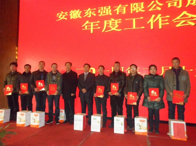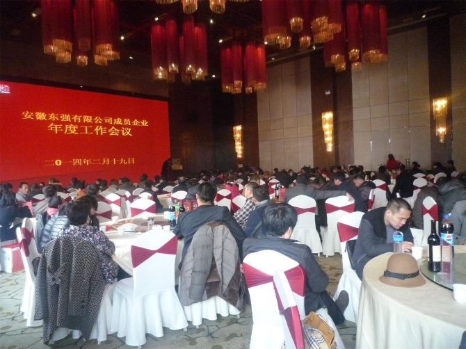 一元復始,萬象更新。為認真總結和回顧2013年度各項工作,并對2014年的生產經營管理提出明確的目標任務和計劃。表彰先進,提升士氣,充分凝聚企業團隊的智慧和力量,以良好的團隊精神、團隊能力和團隊業績,確保2014年各項目標任務的圓滿完成和企業的長遠發展,2014年2月19日,公司在合肥同慶樓花園酒店召開了年度工作會議。出席會議的有公司領導,安徽東強、西站、鯤翼商貿全體員工,蕪湖康特、蕪湖東強、六安宏順、六安鯤鵬、六安東升中層以上管理者、獲獎人員及五年以上員工。