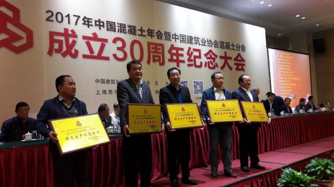 2017年10月25日公司董事長倪總和總經理牛總參加了在西安舉辦的《中國混凝土年會暨中國建筑業協會分會成立30周年紀念大會》,會上參與討論關于混凝土行業綠色發展以及企業轉型升級,并榮獲《綠色生產示范企業》稱號。