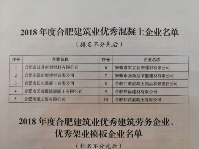 2019年6月20號合肥市建筑工程協會第六屆會員大會盛大召開,我公司參與會議,并被評為2018年度合肥建筑業優秀混凝土企業。隨著公司近年來高速高質量的發展,不斷的或者客戶及社會各界的好評和認可,這離不開公司董事長、劉總經理的高瞻遠矚,以及管理團隊的不懈努力。