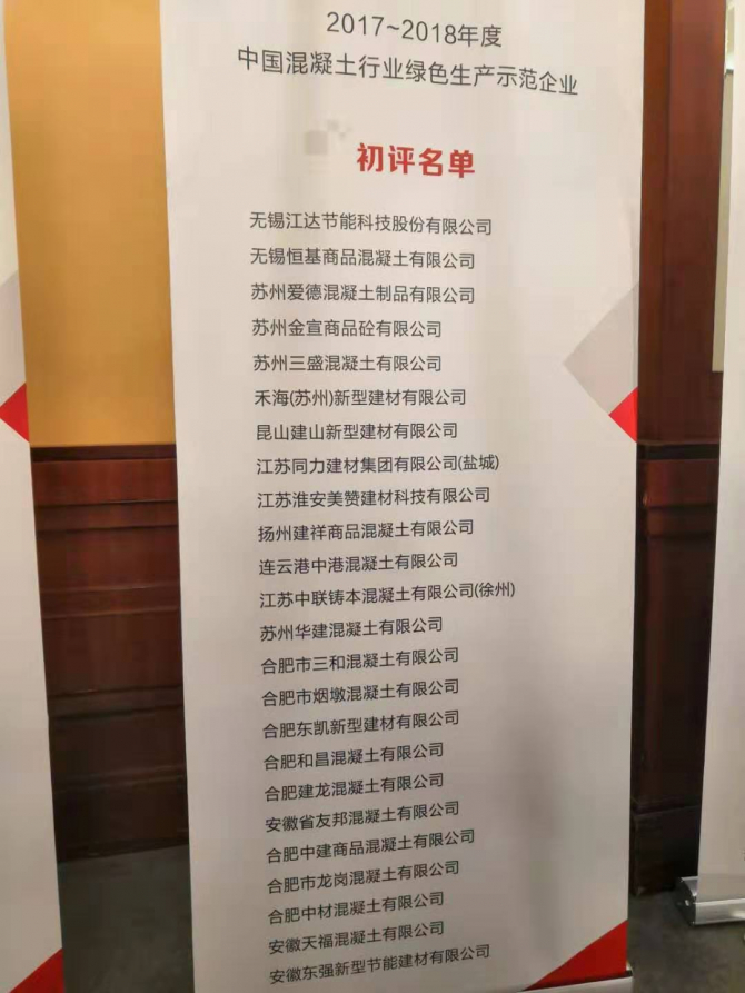 熱烈祝賀我公司在于廈門召開的《2019年預拌混凝土行業綠色生產前沿技術及管理研討會》上榮獲2017-2018年度中國混凝土行業綠色生產示范企業。